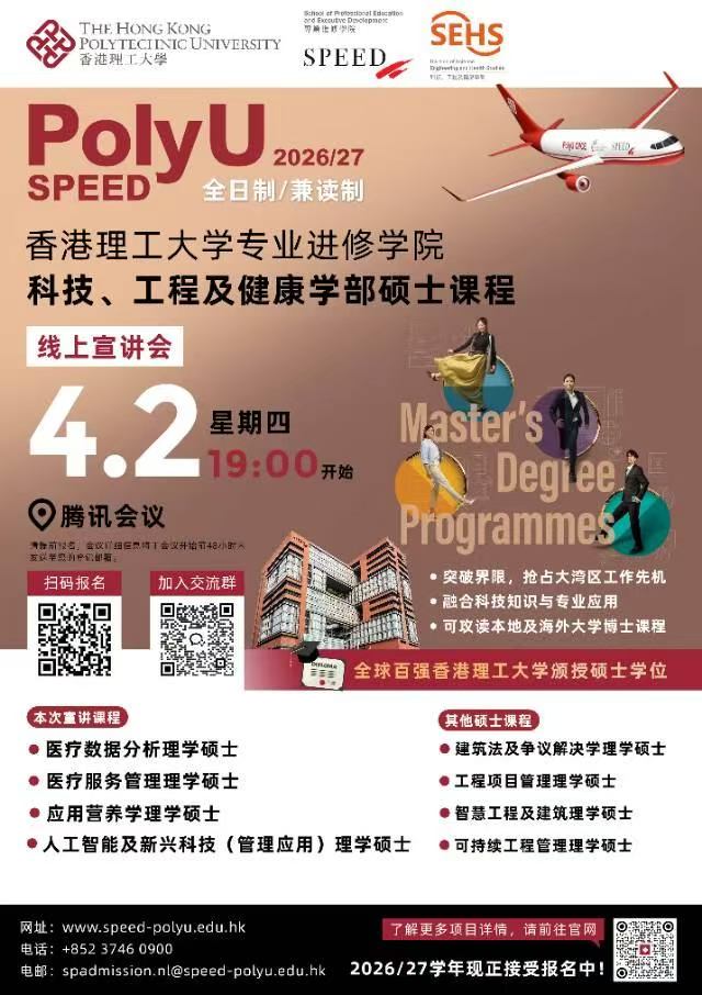 香港理工大学 SPEED 学院26Fall入学线上宣讲会重磅来袭!🔔